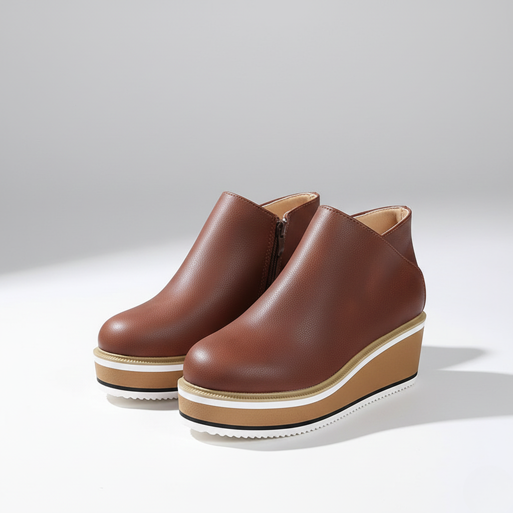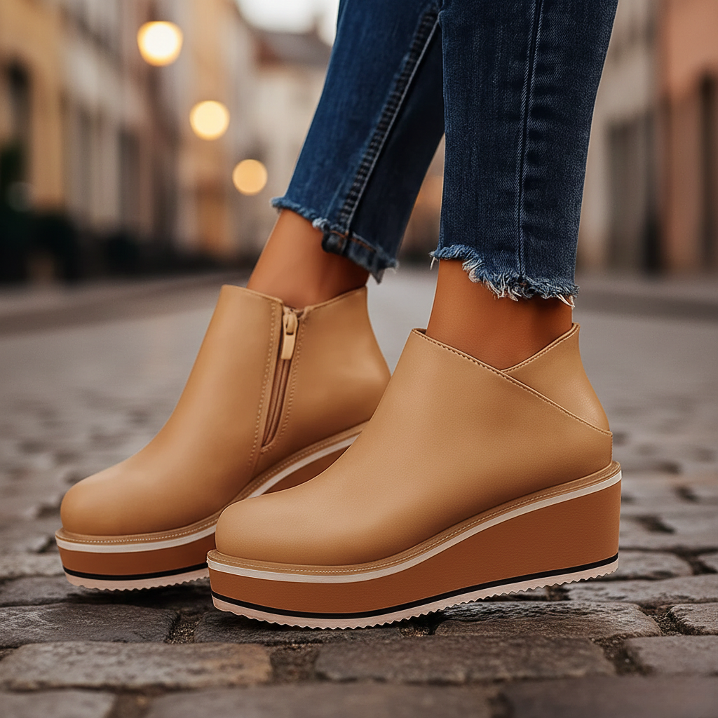 Featuring an orthopedic cushioned insole and a shock-absorbing sole for superior support. The smooth vegan leather upper adds polish, while the side zipper ensures easy on-and-off. Finished with a modern wedge, they seamlessly style any look.